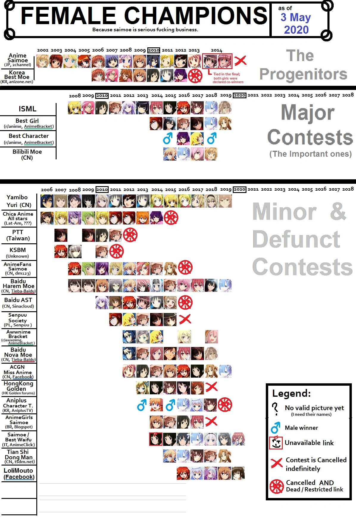 This is a list of female anime characters who has won at least one recurring online popualrity contest.