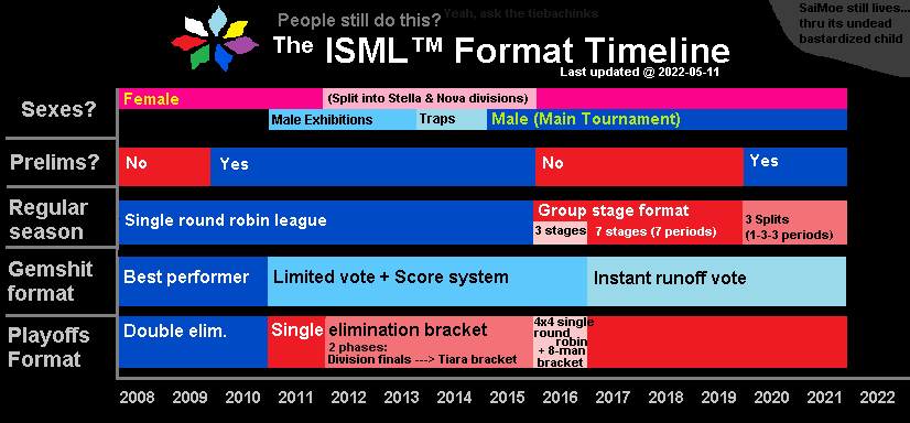 The timeline of the ever-changing ISML tournament format.