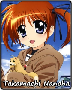 Nanoha Takamachi is the titular protagonist of the Magical Girl Lyrical Nanoha anime franchise. The series is actually a spin-off of the eroge series Triangle Heart, with Nanoha herself originally appearing as a side character in its third installment Triangle Heart 3 and corresponding OVA Sweet Songs Forever.
